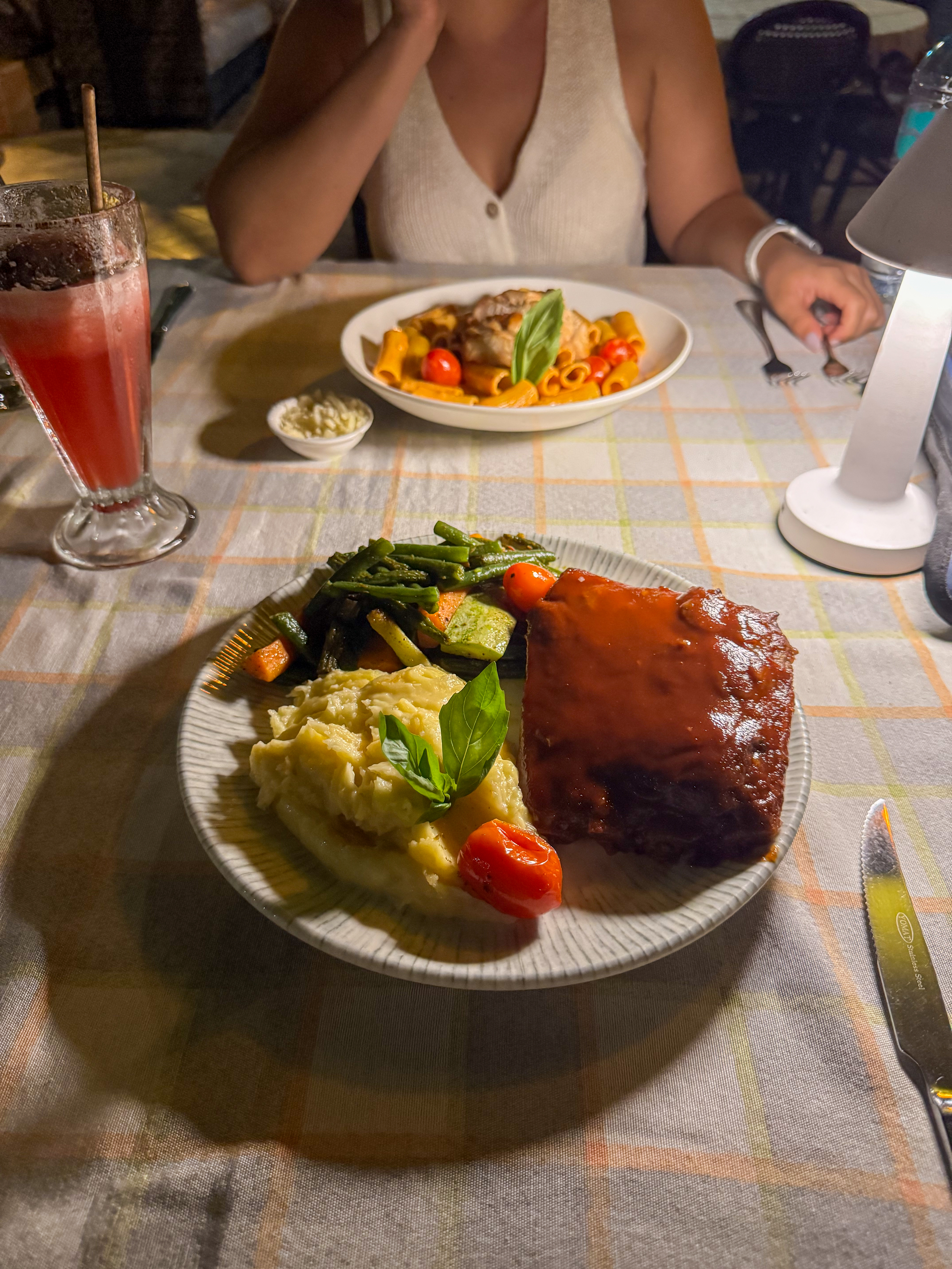 - Restaurante Mawamba. Probamos una pasta y costillas con puré y ambos platos estaban muy ricos, el precio es más alto en comparación a los demás.